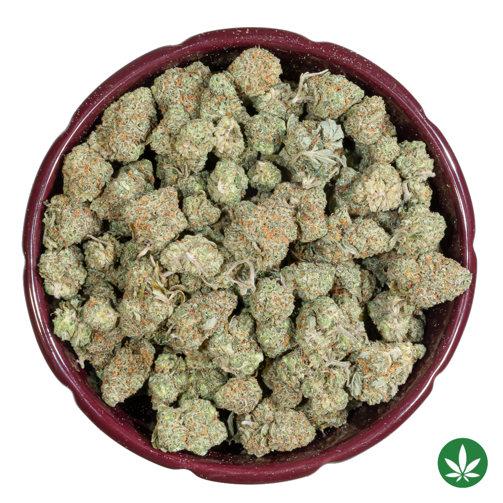 Blue Lobster is a slightly indica dominant hybrid strain created through crossing the delicious Apples N Bananas X Eye Candy strains. If you love a super mouthwatering flavor and a soaring, happy high with your medicine, look no further than Blue Lobster to give you everything that you need and so much more. This bud packs a sweet and sugary blueberry candy taste with hints of fresh, fruity apples and a punch of zesty, sour citrus. The aroma follows the same effect, with a citrusy lemon overtone accented by zesty Granny Smith apples and sweet blueberries. The Blue Lobster high will settle in quickly, filling you with a lifted sense of warming euphoria that gently wraps its way around your mind. You’ll find that you’re infused with a feeling of calm that soothes away mental aches and pains, allowing you freedom to finally think freely. Thanks to these blissful effects and its insanely high 26-30% average THC level, Blue Lobster is often said to be a great choice for very experienced patients who are looking for help with treating the symptoms of chronic stress or anxiety, PTSD, chronic pain and depression or mood swings. This bud has dense and super long, grape-shaped forest green nugs with rich amber undertones, super thin orange hairs and a frosty, blanketed coating of sparkling, amber-tinted white crystal trichomes.