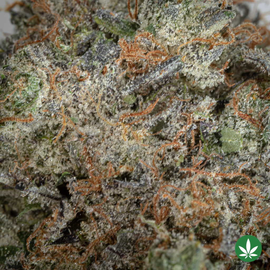 Dank Schrader is an indica dominant hybrid strain created through a cross of the infamous Rockstar Kush X Bubba Kush strains. This dank bud was named for DEA agent Hank Schrader from the TV show “Breaking Bad” and boasts an insanely high THC level that ranges from 23-25% on average. The Dank Schrader high is characterized by long lasting heavy effects that leave you utterly relaxed yet oddly talkative and clear-headed. You’ll slowly fade into deep introspection and spaciness with slightly air-headed tendencies that can cause you to become distant at times. Upon the comedown from this high, your deep philosophical thoughts will pull you into a peaceful, uninterrupted, and pain-free sleep. Because of these powerful indica heavy effects, Dank Schrader is ideal for treating chronic pain, insomnia, migraines, nightmares, and depression. Dank Schrader buds have an aroma of sweet earthy pine and a taste of earthy pine that sweetens with a hint of herbal tea upon exhale. These buds have medium-sized airy furry round light amber hued nugs with fiery orange hairs and deep olive green leaves. These nugs are coated with a fine layer of sticky resin and sparse translucent crystal trichomes.