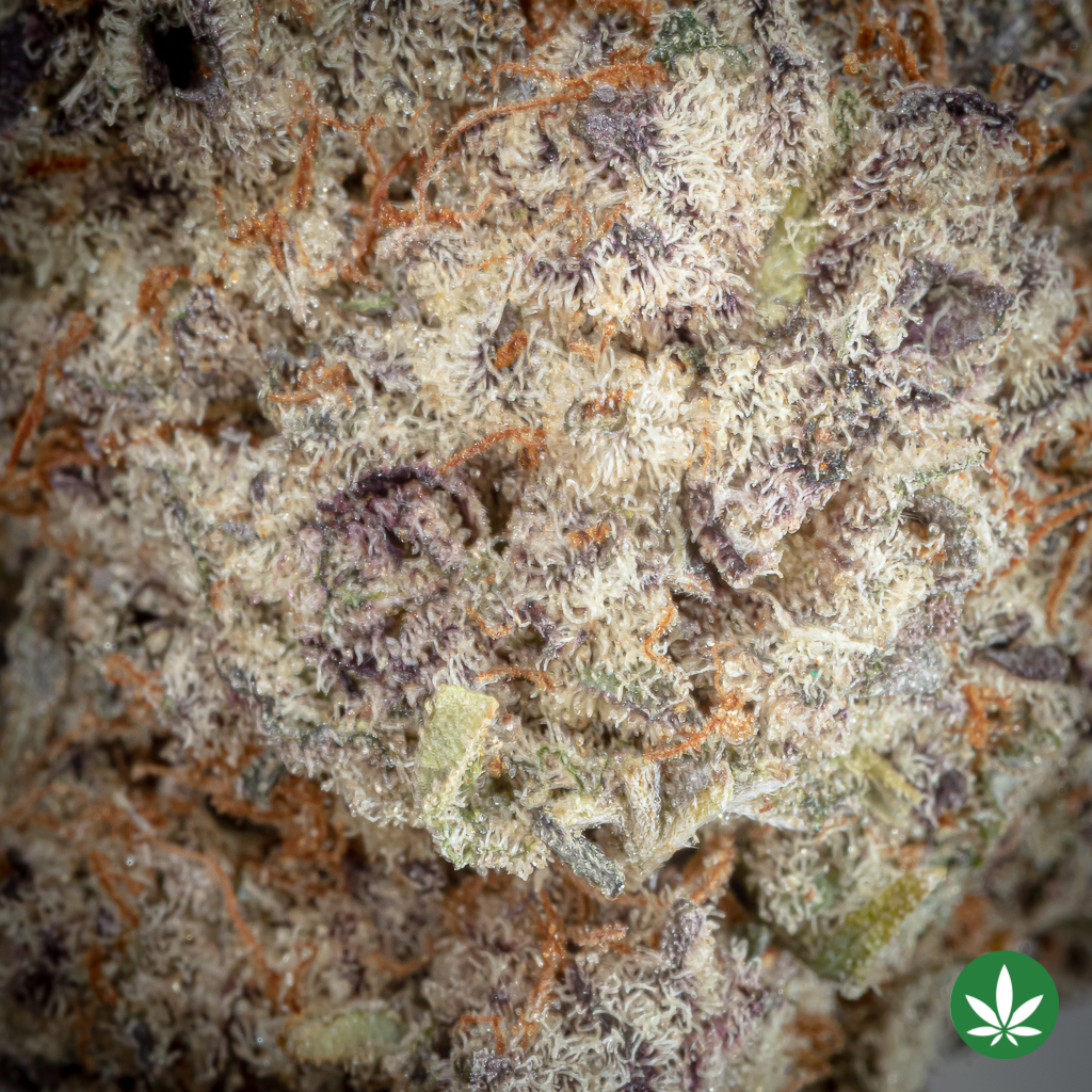 Gorilla Goo is an sativa dominant hybrid strain created through crossing the infamous Chem’s Sister X Sour Dubb X Chocolate Diesel strains. With a super potent 30% average THC level and long lasting high that glues you to the couch for hours and hours on end. The Gorilla Goo high starts with a heavy euphoric lift that launches your spirits to new heights, leaving you totally relaxed and at ease without a care in the world. As your mind settles into a state of calm, your body will follow suit, easing you into a state of complete relaxation that quickly turns heavy and sedative. With these effects and its high level of potency, Gorilla Goo is often chosen to treat conditions such as chronic pain, insomnia, depression, and muscle spasms. This bud has an addictive earthy sour flavor with a rich chocolate diesel exhale. The aroma is very fruity with a hint of pungent pine and heavy diesel that’s released as the nugs are burned. Gorilla Goo buds have long forest green nugs with dark orange hairs and a super frosty coating of bright white crystal trichomes.
